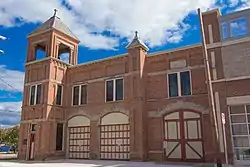 Old Fire House No. 4 Is a two-story brick Late Victorian structure; the original section is two bays wide. It has a pyramid-roof tower at one corner, and paneled brick detailing.[2]