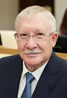 Oleg Viktorovich Morozov (Russian: Олег Викторович Морозов) is a Russian and former Soviet politician. He has the federal state civilian service rank of 1st class Active State Councillor of the Russian Federation.[1] He was a deputy in the State Duma between 1993 and 2012 and again since 2020.[2][lower-alpha 1] He served as a member of the Federation Council between September 2015 and September 2020. From May 2012 till March 2015, he worked as head of the presidential office for domestic policy.[4] He supports the United Russia party.[5][6]