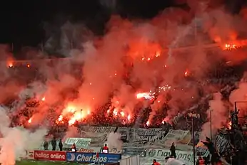 The football rivalry between Olympiacos and PAOK is considered the fiercest intercity rivalry in Greece and a large number of games between the two football teams have been stigmatized by nasty incidents.[1][2]
