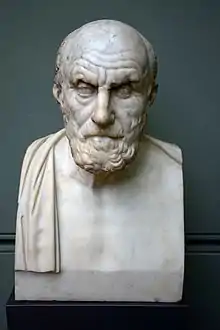 Galen maintains that most philosophers including Pythagoras, Aristotle and even many Stoics agreed with Plato's division of the soul,[20] even if some of them understood the division in terms of powers rather than as parts.[18] His goal is to show that Chrysippus represents a deviant position.[20] He claims that Zeno and Cleanthes were really on Plato's side,[21] but the evidence he presents is very meagre.[22] He accepts he has little evidence for Zeno,[23] and the only evidence he provides for Cleanthes is a brief versified dialogue between anger and reason which he thinks shows that Cleanthes accepted an irrational part of the soul.[24]