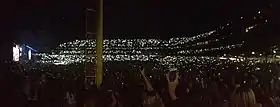 The tour was a commercial success, playing for over 980,000 fans. A lit up and crowded Safeco Field is seen from the couples concert there on July 30, 2014.