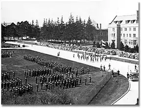 The War Memorial Hall is a landmark building built in June 1924 as a lecture hall or theatre at the Ontario Agricultural College to honour students who had enlisted and died in the First World War, and in the Second World War. Two bronze tablets in the Memorial Chapel remembers alumni who have died during these wars.[2]