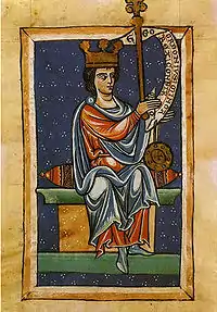 ![]() Depiction of Ordoño III based on the 12th-century Libro de las Estampas | |