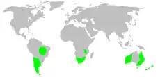 Most genera are endemic to New Zealand and the Australian region, but several genera occur in southern Africa[2] and South America.[3] As of April 2019, the World Spider Catalog accepts the following genera:[4][5]