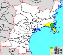 colored area=original extent in Meiji period; green=present area