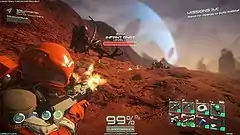 The game was released onto Steam's early access program on September 28, 2016, accompanied by a new trailer.[16] When it was released, the developers were still working on refining and broadening the gameplay.[17] In a press release, Brian McRae said the game's release was the "very beginning of this epic journey",[5] and noted their plans to continue to update and expand the game based on player's feedback.[5] Since the initial Early Access release, many features have been added to the game, including craftable spaceships.[18] One of the biggest additions to the game during early access so far was the "Prometheus II Unearthed" update, which was released on April 27, 2017. The update added a large amount of new content, including more explorable areas, more weapons, and more enemies.[19] In March, McRae told PC Gamer that around 85% of the content suggested by the community had not yet been added to the game.[18] He mentioned plans to add the ability to build "complex space stations" and possibly being able to build biospheres on a space station allowing players to grow food.