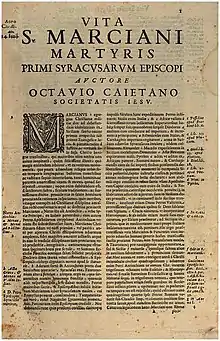 ![]() 'Life of Santi Marcianus, martyr, first bishop of Syracuse' from Gaetani's Vitae Sanctorum Siculorum | |