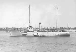 As built, the ship carried three 76 mm Cruesot rapid-fire cannons and 100 rounds, two 47 mm Cruesot rapid-fire cannons with 1,200 rounds of ammunition as well as two 7.6 mm Hotchkiss machine guns with 31,700 rounds of ammunition. Two of the 76 mm guns were mounted on the forward sponsons and one aft. After its modernization in 1926, the guns were changed to two 76 mm Cruesot rapid-fire guns and two 47 mm Cruesot rapid-fire guns. In 1946 the ship's weapons were dismantled.