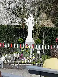 Our Lady of Beauraing (French: Notre-Dame de Beauraing; also known as the Virgin of the Golden Heart) is the title of 32 Marian apparitions reported in Beauraing, Belgium, between November 1932 and January 1933 by five children whose ages ranged between 9 and 15. For several years after the apparitions, pilgrims flocked to the small town of Beauraing, province of Namur (Belgium), and many cures were claimed. She is celebrated under this title on 29 November.