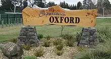 Oxford (Māori: Ōkiwhata)[4] is a small town serving the farming community of North Canterbury, New Zealand. It is part of the Waimakariri District and is a linear town, approximately 2 kilometres (1.2 mi) long. Originally, it was served by the Oxford Branch railway, and had two stations, East Oxford and West Oxford. The line closed in 1959 and was dismantled. Some railway signs and the remnants of railway platforms can still be seen along Oxford Road on the way to Rangiora.