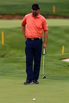 Pádraig Peter Harrington (born 31 August 1971) is an Irish professional golfer who plays on the European Tour, PGA Tour and the PGA Tour Champions. He has won three major championships: The Open Championship in 2007 and 2008 and the PGA Championship, also in 2008. He spent over 300 weeks in the top-10 of the world rankings, and reached a career-high ranking of third in July 2008. Harrington was a member of six consecutive Ryder Cup teams between 1999 and 2010. In 2024, he will be an inductee of the World Golf Hall of Fame.[2]