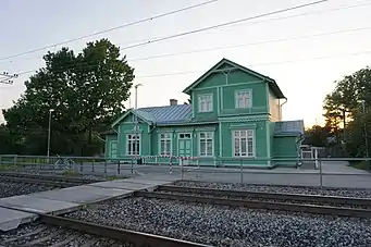 Pääsküla station (Estonian: Pääsküla raudteepeatus, previous Russian name was Petrovskaja Sloboda until 1919) is a railway station in Pääsküla in Nõmme district of Tallinn, Estonia, approximately 11 kilometers (6,8 mi) southwest from the Baltic station (Estonian: Balti jaam) which is the main railway station of Tallinn, near the Baltic Sea. The Pääsküla railway station is located between Kivimäe and Laagri railway stops of Tallinn-Keila railway. The station was opened in 1915.