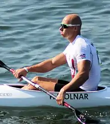 Péter Molnár (born 16 February 1986) is a Hungarian canoeist who had his best achievements in two-men and four-men events, partnering with Sándor Tótka. Together they won a world title in 2015 and a European title in 2016 and placed fourth at the 2016 Olympics. Individually Molnár won silver medals at the 2008 and 2011 European Championships and placed 15th at the 2016 Olympics.[3]