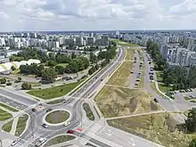 Filipiny Płaskowickiej street (Polish: ulica Filipiny Płaskowickiej) is a thoroughfare which links the west and the east of Ursynów. It starts nearby the Nowoursynowska and crosses: Rosoła, Cynamonowa, Lanciego, Komisji Edukacji Narodowej, Dereniowa, Stryjeńskich, Pileckiego, Polskie Drogi and Roentgena. It has its end in the crossing with Puławska. Since 2017, the street is being rebuilt because of the construction project of the Expressway S2 including tunnel under Płaskowickiej.[1]