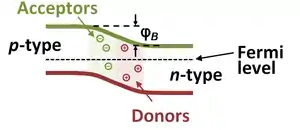 at any position within the diode at equilibrium.[1] Where and are the bulk majority carrier densities on the p-side and the n-side, respectively.
