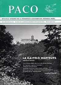 The Mondpaca Esperantista Movado (World Peace Esperantist Movement), founded in 1953 in Austria, had great significance for the reorganizing of the Esperanto movement in European socialist countries. The movement published a monthly journal called PACO. The magazine was published every month in a different country, sometimes behind the Iron Curtain. The January issue might have been edited by the Japanese MEM section, the February issue by the French section, the March issue by the Bulgarian section, etc. Also, the German Democratic Republic's MEM section published several issues of PACO.[1]