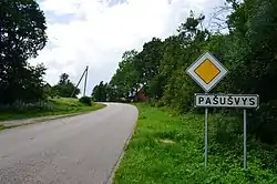 Pašušvys (formerly Russian: Пошушве, Polish: Poszuszwie)[1] is a village in Kėdainiai district municipality, in Kaunas County, in central Lithuania. According to the 2011 census, the village had a population of 91 people.[2] It is located 6 kilometres (3.7 mi) from Krakės, on the right bank of the Šušvė river, along the Krakės-Betygala road. There are a community house, a cemetery of the First World War victims, a former watermill (now in ruins), some buildings of the Pašušvys Manor, a former manor park. Nearby an ancient burial place is located. The Pašušvys Landscape Sanctuary is located by the Šušvė river. The Pašušvys forestry is in Skirgailinė village.