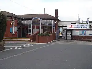 Paddock Wood railway station is on the South Eastern Main Line and Medway Valley Line in south-east England, serving the town of Paddock Wood, Kent. The station also serves the villages of Matfield, Brenchley and Horsmonden, which do not have stations of their own. It is 34 miles 67 chains (56.1 km) down the line from London Charing Cross. The station and all trains calling there are operated by Southeastern.
