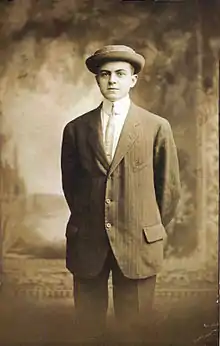 From roughly 1860 to 1920[1][2] painted photography backdrops were a standard feature of early photography studios. Generally of rustic or quasi-classical design, but sometimes presenting a bourgeoisie trompe-l'œil,[3] they eventually fell out of fashion with the advent of the Brownie and Kodak cameras which brought photography to the masses with concurrent changes to public sensibility. Inasmuch as they were produced for six decades by local artisans, they can provide important clues to the provenance of old family photographs for genealogical research,[4][5][6] and their staged influence lives on in "old-timey" photography sets.[7][8] Furthermore, they are of some interest to specialized collectors of the history of photography.[9]