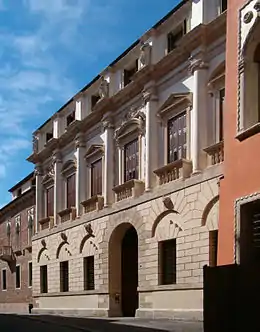 Palazzo Porto is a palace built by Italian Renaissance architect Andrea Palladio in Contrà Porti, Vicenza, Italy. It is one of two palaces in the city designed by Palladio for members of the Porto family (the other being Palazzo Porto in Piazza Castello). Commissioned by the noble Iseppo da Porto, just married (about 1544), this building had a rather long designing stage and a longer and troublesome realization, partially unfinished.