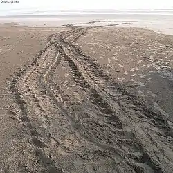 153 millions of years ago, the climate was tropical. The lagoon had only few contacts with the open sea, and evaporation was intense. Terrestrial animals venturing in the lagoon shores left their tracks in a quickly drying mud.