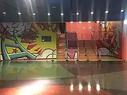 Panic Coaster – Back Daaan (Japanese: パニックコースターバックダーン) is an indoor family roller coaster at the Tokyo Dome City in Bunkyō, Tokyo, Japan. The ride experience relies heavily on vibrantly colored projections and light displays, and navigates the ride layout both forwards and backwards.[1]