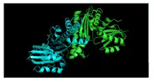 - 1 2 Yang K, Eyobo Y, Brand LA, Martynowski D, Tomchick D, Strauss E, Zhang H (August 2006). "Crystal structure of a type III pantothenate kinase: insight into the mechanism of an essential coenzyme A biosynthetic enzyme universally distributed in bacteria". Journal of Bacteriology. 188 (15): 5532–40. doi:10.1128/JB.00469-06. PMC 1540032. PMID 16855243.