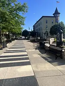 The Paramount Plaza Walk of Fame honors artists who recorded for Paramount Records in Grafton, Wisconsin with a 'piano key'.