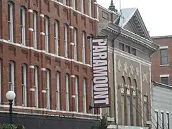 In 1913, George Chaffee built a theatre called the Playhouse.[1] The exterior of the Playhouse had a classical style reflecting the City Beautiful movement of the time, while the interior resembled a Victorian era opera house with lavish decoration. The theatre was renamed The Paramount in 1931, and its entertainment shifted from live performance to movies. The movie theater closed in 1977. In 1999, a local group began restoring the theatre to its historic appearance. The theatre reopened in March 2000 and serves again as a center for artistic, cultural, and educational events.[2]