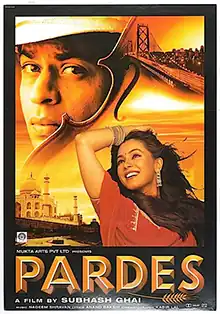 Pardes (transl.Foreign land) is a 1997 Indian Hindi-language romantic drama musical film directed, produced, and co-written by Subhash Ghai. Distributed by Mukta Arts, it stars Shah Rukh Khan, and newcomers Mahima Chaudhry and Apurva Agnihotri in lead roles, with Alok Nath, Amrish Puri and Himani Shivpuri in supporting roles. The film was shot at various locations in the United States (Los Angeles, Las Vegas), Canada (British Columbia, including Vancouver) and India (Uttarakhand and Uttar Pradesh, including Agra).