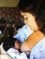 A human mother feeding her child