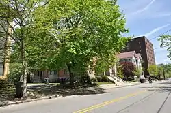 The Parkis–Comstock Historic District is a residential historic district in the Elmwood neighborhood of Providence, Rhode Island. It includes all of the properties on Parkis Avenue and a number of properties on the western end of Comstock Street and Harvard Avenue, just across Broad Street from Parkis. The houses are set on relatively uniform large lots, generally set close to the street, and represent a fine collection of Late Victorian upper-class housing. Most of the houses were built between the 1860s and the 1910s. The first house to be built on Parkis Avenue was the c. 1869 Louis Comstock House at number 47; it has fine Second Empire styling, with corner quoining and a bracketed mansard roof.[2][3]