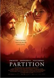Partition is a 2007 English-language period film directed by Vic Sarin, written by Patricia Finn and Vic Sarin, and starring Jimi Mistry and Kristin Kreuk. The film is set in 1947, based on the Partition of India and was partially shot in Kamloops, British Columbia, Canada.