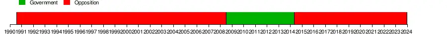 | Year | Leader | Popular vote | % of popular vote | # | # of seats | Seat change | Coalition | Status |