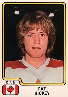 Patrick Joseph Hickey (born May 15, 1953) is a Canadian former professional ice hockey left winger who played 2 seasons in the World Hockey Association with the Toronto Toros and then 10 seasons in the National Hockey League (NHL) for the New York Rangers, Toronto Maple Leafs, Quebec Nordiques and St. Louis Blues between 1973 and 1985. Pat is the brother of Greg Hickey.