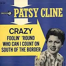 This was Cline's third extended play album to be self-titled. The EP consisted of four songs Cline had recorded since her near-fatal automobile accident in June. The first side of the record contained her single from late 1961, "Crazy" and a cover of Buck Owens' "Foolin' Around." The flip side contained "Who Can I Count on" (the original B-side the "Crazy" single) and a cover version of "South of the Border (Down Mexico Way)." When the EP was released in early 1962, "Crazy" had already become a major country-pop crossover hit, peaking at #2 on the Hot Country Songs chart and #9 on the Billboard Hot 100. All of the songs included on this EP were also released on Cline's album released in late 1961, Patsy Cline Showcase.