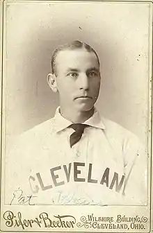 Patsy started his professional baseball career with the Western League's St. Joseph Reds in 1886. The following season, while playing for Denver of the WL, he had a .424 batting average in 94 games.[2] Tebeau made his major league debut with the National League's Chicago White Stockings in September of that year. In 20 games with Chicago, he batted .162.[1] He then played in the Western Association in 1888.[2] In 1889, Tebeau joined the NL's Cleveland Spiders and batted .282.[1] The following year, he was a player-manager for the Cleveland Infants of the Players' League. In 1891, Tebeau returned to the Spiders and was a player-manager for the team until 1898.[3] His lowest batting average with the Spiders was .244 in 1892, and his highest was .329 in 1893.[1] The Spiders never finished a full season in first place in the National League, but Tebeau's team benefited from the season structure in 1892, 1895 and 1896; the 1892 season was a split-season that found Cleveland as the winner of the second half and the right to play in the World's Championship Series (the pre-modern postseason before the World Series). They would compete in the next rendition of postseason play in the League with the Temple Cup that matched the first and second place teams, and Cleveland would win once.[3]