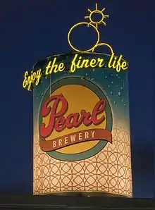 Through the 1940s, operations at Pearl continued at a steady pace. Pearl was well established as the largest brewer in Texas, even though Lone Star beers had adopted the slogan proclaiming Lone Star the national beer of Texas.[14] Pearl, as a company, did its part in the war effort, reducing can production to save on metals and producing generic beer for the troops abroad. At the end of the war, Pearl reestablished its aggressive growth drive and shifted marketing to focus on the emerging power buyer, the postwar housewife.[15]
