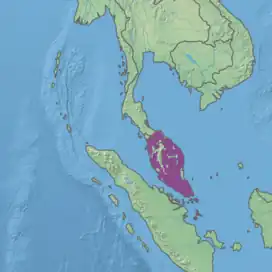 The ecoregion home to 195 mammal species, including several large and endangered species – Asian elephant (Elephas maximus), gaur (Bos gaurus), tiger (Panthera tigris), Malayan tapir (Tapirus indicus), and clouded leopard (Neofelis nebulosa).[3] The Sumatran rhinoceros (Dicerorhinus sumatrensis) once inhabited the forests, but Malaysia's last rhinoceroses died in 2019, and the species' few remaining members survive only in Sumatra.[4]