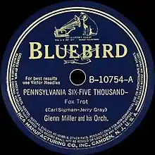 "Pennsylvania 6-5000" (also written "Pennsylvania Six-Five Thousand") is a 1940 swing jazz and pop standard recorded by Glenn Miller and His Orchestra as a Bluebird 78 rpm single. The music was by Jerry Gray and the lyrics by Carl Sigman.