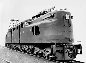 The Pennsylvania Railroad's class DD2 was a single prototype electric locomotive never placed into series production.[3] It was intended as an improved and simplified GG1 for use on the planned, but never built, extension of the PRR's electrification west of Harrisburg, Pennsylvania.[1] The one locomotive produced was numbered #5800 and used in regular Baltimore tunnel helper service until it was scrapped in September 1962.[2]