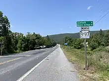 In 1964, PA 997 was extended north from Green Village to PA 233 in McCrea, replacing the entire length of PA 333 between Culbertson and Lurgan, the section of PA 433 between Lurgan and Roxbury, and the section of PA 944 between Roxbury and McCrea. In the 1960s, PA 997 was rerouted to bypass Scotland to the northeast, with the former alignment now unnumbered Main Street.[13] In 1977, PA 997 was moved off its alignment on Mont Alto Road, Main Street and Mount Pleasant Road and shifted east onto its current route via Black Gap.[14]
