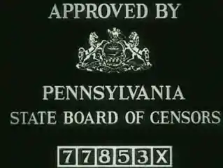 - ↑ Harris Ross (2008). "THE PENNSYLVANIA STATE BOARD OF CENSORS: THE GREAT WAR, D. W. THE MOVIES, AND GRIFFITH". Pennsylvania History: A Journal of Mid-Atlantic Studies. The Pennsylvania Historical Association. 75 (2): 227–259. doi:10.2307/27778831. JSTOR 27778831. S2CID 164931860.
