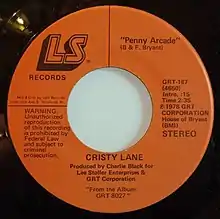 - 1 2 3 Lane, Cristy (June 1978). ""Penny Arcade"/"Somebody's Baby" (7" vinyl single)". LS Records. LS-167.