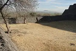 On ground level, on the western side of the Main Structure is a large platform containing two large "sunken patios", probably used for preliminary ceremonial activities.[4]
