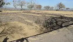 The center originally occupied about 130 hectares[1] of land and was home to many structures, of which 22 pyramids have been identified,[1] including a multitude of terraced agricultural fields that supported the population. The region was initially settled around 100 AD, with the center reaching its apex between 300 and 650 AD prior to the population's reversion to nomadism.