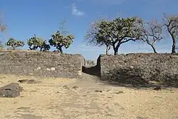 The main access stairway to the main structure is located on the western side of the structure, facing a platform and two "sunken patios". The structure has a secondary entrance, on the southern side.[4]