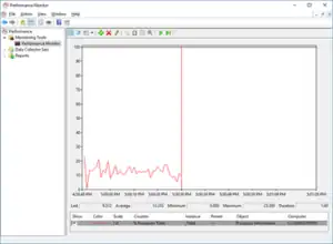 The name in the MMC plug-in was changed back to "Performance Monitor" in Windows Vista, though it was also bundled with a Reliability Monitor and a new performance summary feature called Resource Overview.[10][11] In Windows 7, the resource overview feature was spun off into a stand-alone Resource Monitor application, with the landing page for the Performance Monitor in Windows 7 containing a pointer to the (new) Resource Monitor; Windows 7 also moved the Reliability Monitor to the Action Center. A new feature added to the Performance Monitor in Windows Vista is Data Collector Set, which allows sets of accounting parameters to be easily manipulated as a group.[12] Performance Monitor plots system CPU activity and offers the ability to add counters as a method of plotting performance, an option different from the ability to view CPU activity within Task Manager. Various integrated counters are available, and the tool also offers the option to import them. The tool allows for monitoring selective instances when selecting counters and offers a description of each counter. Additionally, counters can be highlighted if multiple are selected. Also included are various options for monitoring; that is, Chart, Log, and Report: