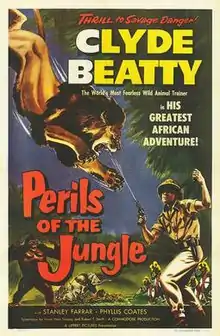 Perils of the Jungle is a 1953 American black and white adventure film directed by George Blair, featuring animal trainer and circus impresario Clyde Beatty and Phyllis Coates, known for her roles in serials and "B" films. Perennial "heavy" John Doucette also appeared in the film.