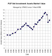 4. 1 2 3 4 5 6 7 "PUF Timeline - Home". The University of Texas Investment Management Company. 2008. Retrieved 2009-02-08.